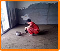 为了后期地板安装平整,所以地面找平采用干找、湿找,水泥比例1:(2.5-3),做点或做线径法找平。