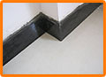 为了使踢脚线阴阳角位置美观,所以地砖与配套的踢脚线对缝,踢脚线阳角45坡角接口,踢脚线顺直。